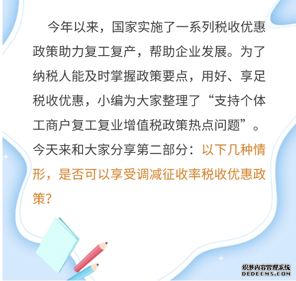 答:可以。根據(jù)《財(cái)政部 稅務(wù)總局關(guān)于支持個(gè)體工商戶復(fù)工復(fù)業(yè)增值稅政策的公告》(2020年第13號(hào))規(guī)定,自3月1日至5月31日,對(duì)湖北省增值稅小規(guī)模納稅人,適用3%征收率的應(yīng)稅銷售收入,免征增值稅;除湖北省外,其他省、自治區(qū)、直轄市的增值稅小規(guī)模納稅人,適用3%征收率的應(yīng)稅銷售收入,減按1%征收率征收增值稅。根據(jù)《財(cái)政部 稅務(wù)總局關(guān)于延長(zhǎng)小規(guī)模納稅人減免增值稅政策執(zhí)行期限的公告》(財(cái)政部 稅務(wù)總局公告2020年第24號(hào))規(guī)定,《財(cái)政部 稅務(wù)總局關(guān)于支持個(gè)體工商戶復(fù)工復(fù)業(yè)增值稅政策的公告》(財(cái)政部 稅務(wù)總局公告2020年第13號(hào))規(guī)定的稅收優(yōu)惠政策實(shí)施期限延長(zhǎng)到2020年12月31日。
