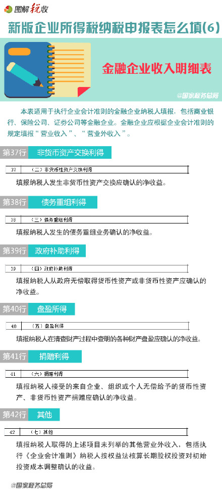 2015年(2014年度)企業所得稅納稅申報表填寫方法(6):金融企業收入明細表